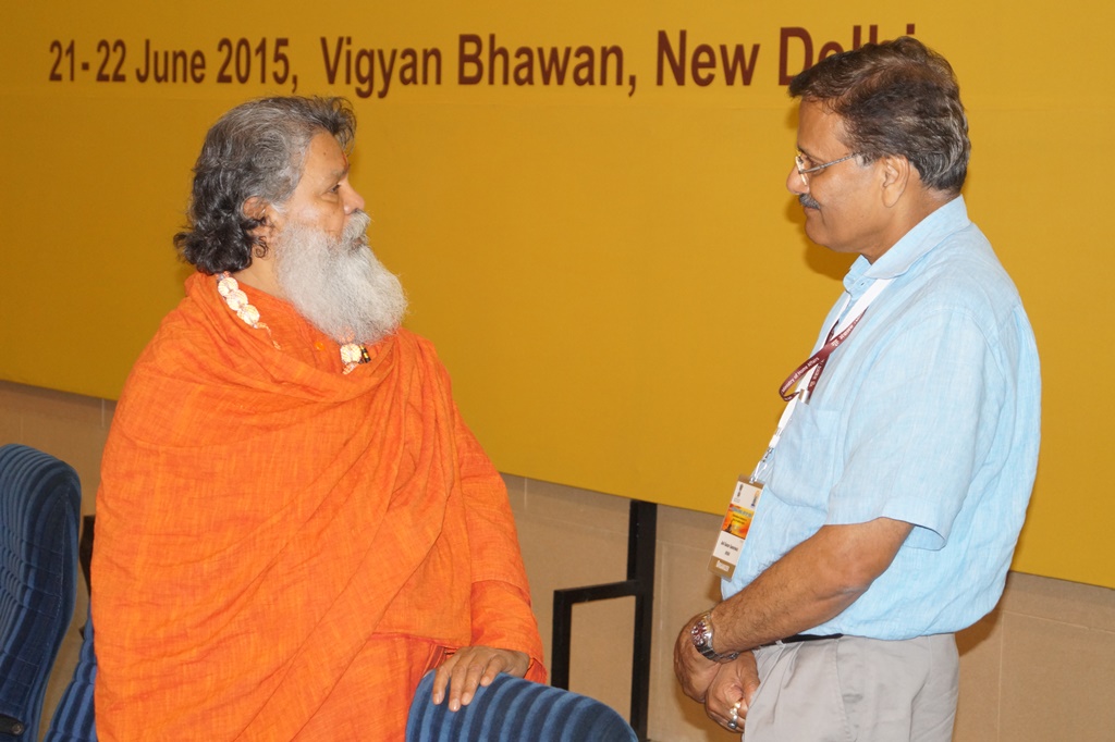 Before the closing session of the conference, the Valedictory session, Vishwaguruji met with the Union Minister of Home Affairs, Hon. Sri Rajpath Singh, and AYUSH Minister Sri Shripad Yesso Naik, as well as with Dr. Nagrendraji, Sadhguruji, and other honorable personalities who honored this session.