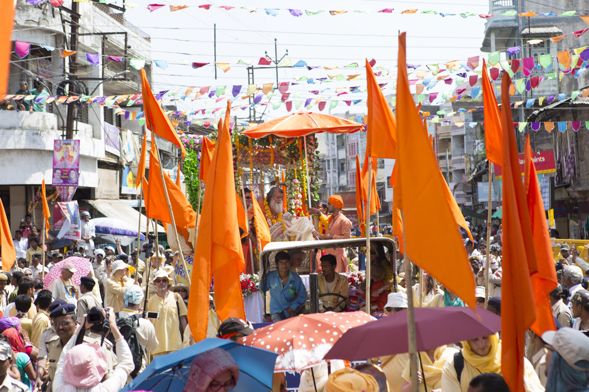 Vishwaguruji was invited as guest Mahamandaleshwar on the procession and was accompanied by many bhaktas from the Sri Alakhpuriji Siddha Peeth Parampara camp.