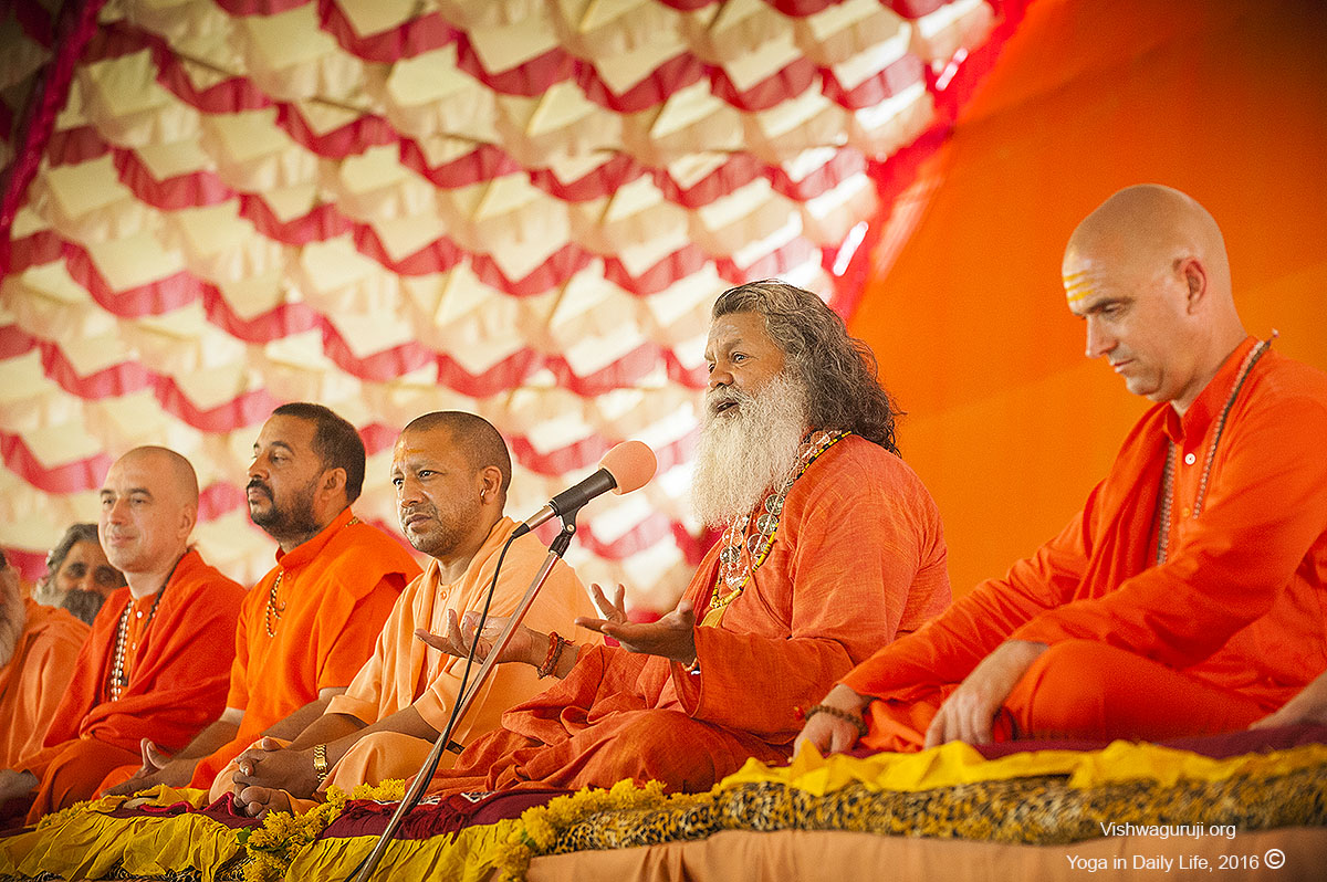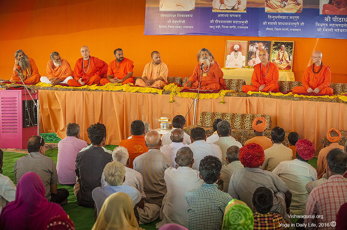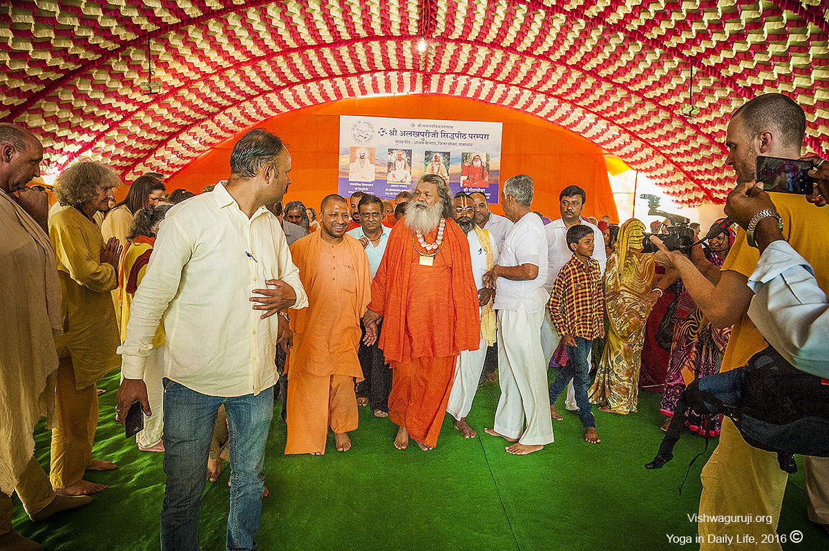 His Holiness Yogi Adityanath, Peethadishwar (successor) of Nath Parampara, and Mahant (head priest) of the Gorakhnath Mutt (Hindu temple in Gorakhpur) visits Vishwaguruji in his camp.
