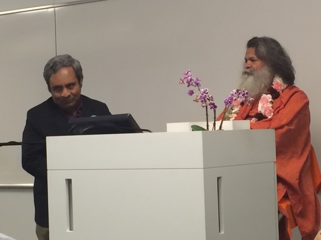 On Friday evening, Vishwaguruji gave a lecture to some students at the HULT International Business School campus in San Francisco. Ambassador Venkatesan Ashok, the Consul General for India in San Francisco, attended the event and gave introductory remarks to open the lecture. Vishwaguruji spoke on the principles of Yoga, and demonstrated Yoga techniques that could assist in improving concentration for students' studying. Mrs Bette Venkateswaran provided some closing remarks to the evening.