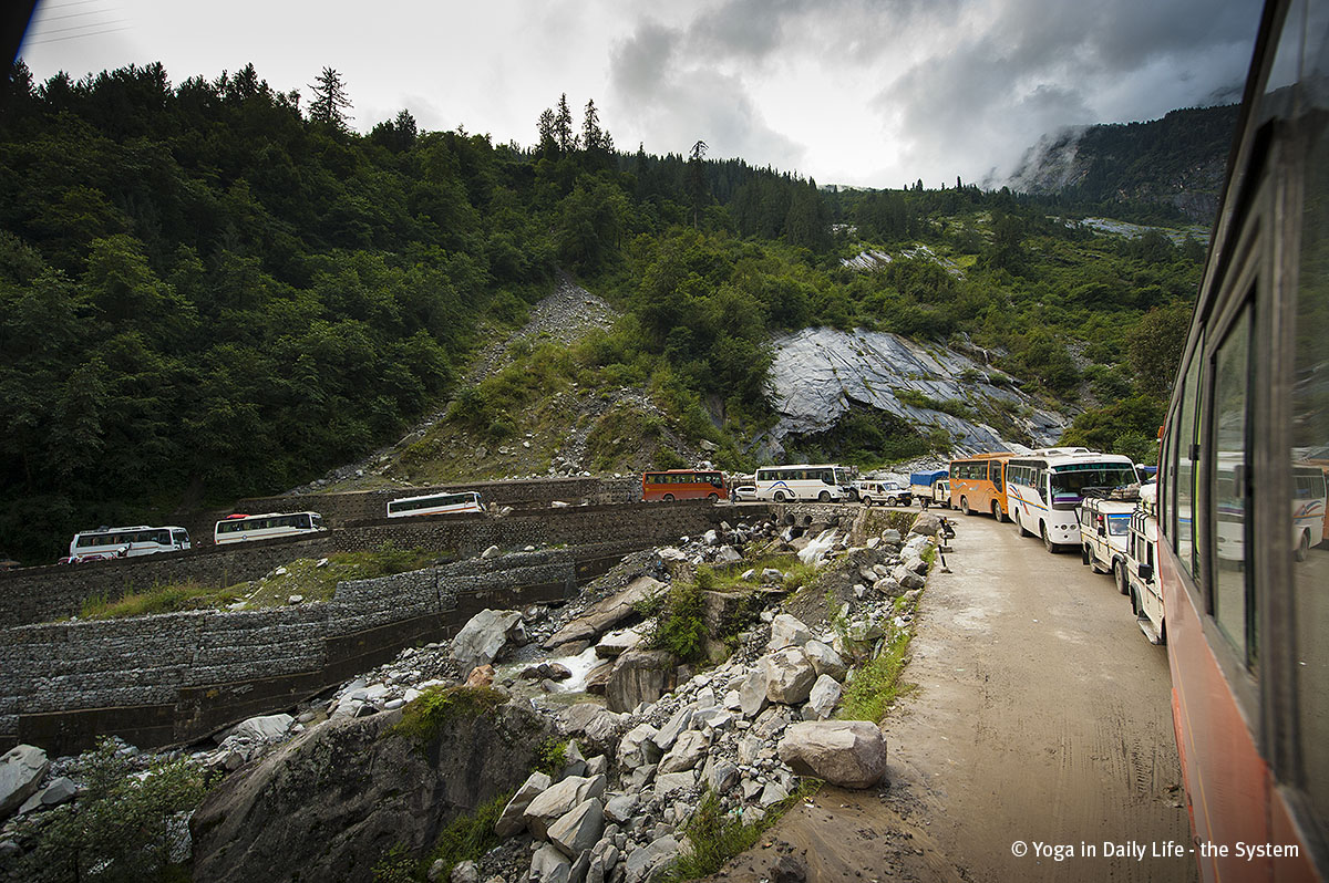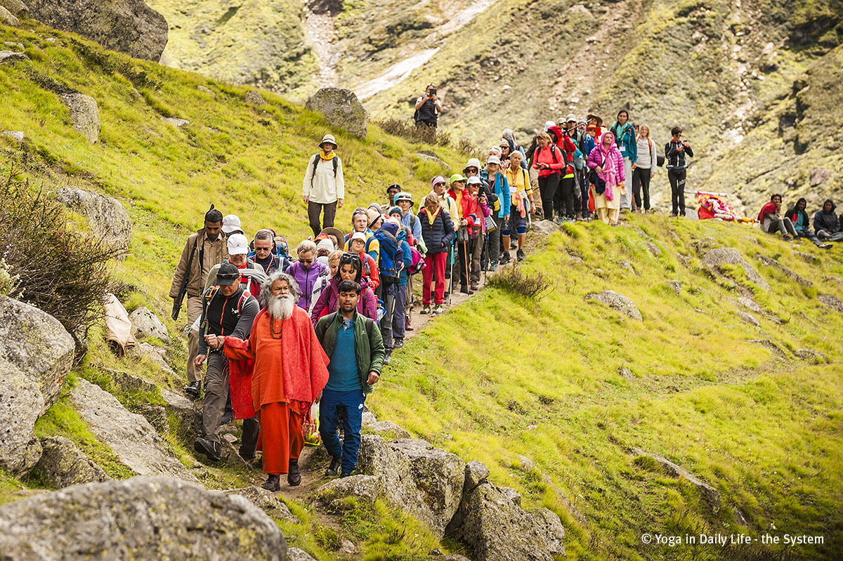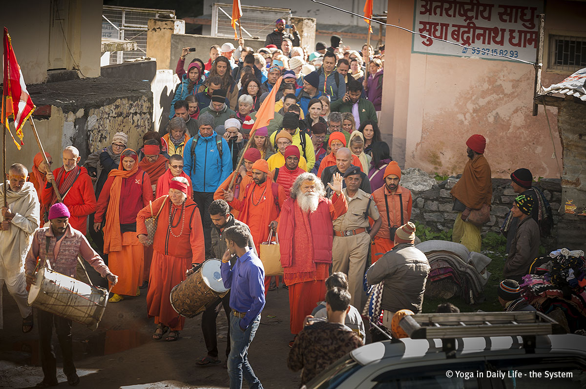 The pilgrimage began in Rishikesh, known as the 'Gateway to the Garhwal Himalayas'. It is in the Garhwal Himalayas region of the Indian state Uttarkhand, far up in the mountains, that the caves of Sri Alakhpuriji and Sri Devpuriji are located – where they used to live and practice their spiritual tapasya (austerities).