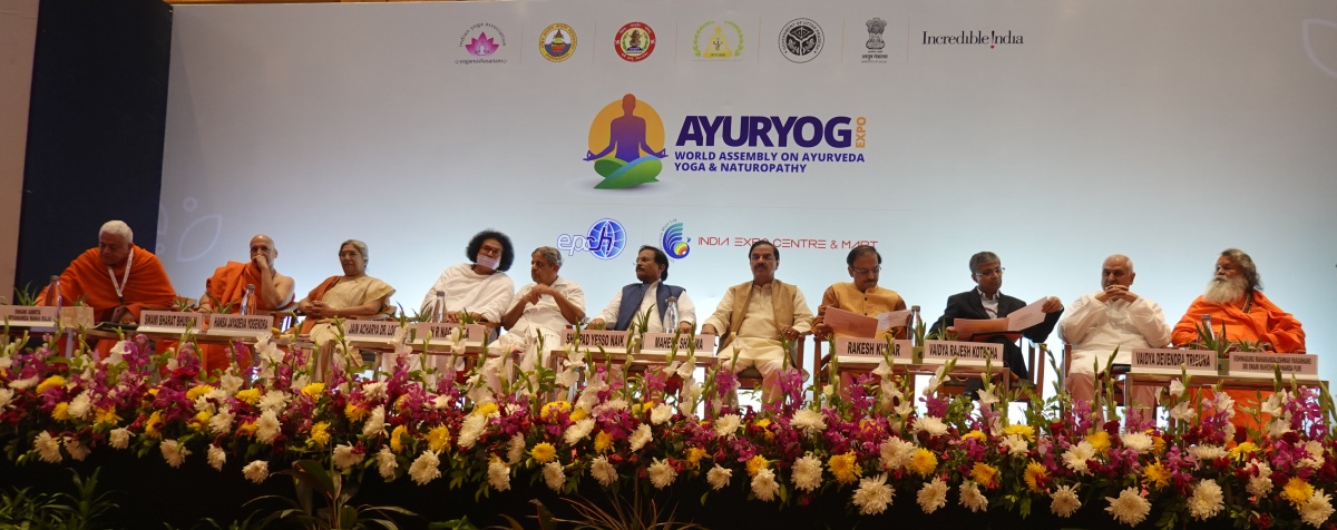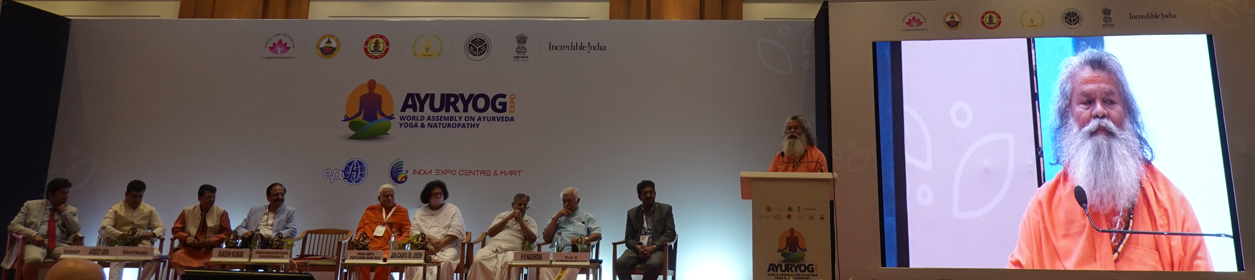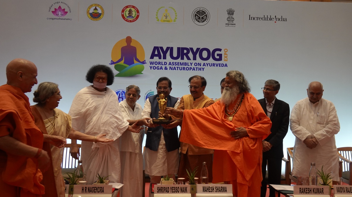 The Ayuryog Expo was opened by the Minister of AYUSH, Sripad Yesso Naik, at the convention mart of Greater Noida near Delhi, with an inaugural session. On inauguration, Vishwaguruji addressed the audience with inspiring words about yoga and pointed out the importance of practicing rather than just talking about yoga.