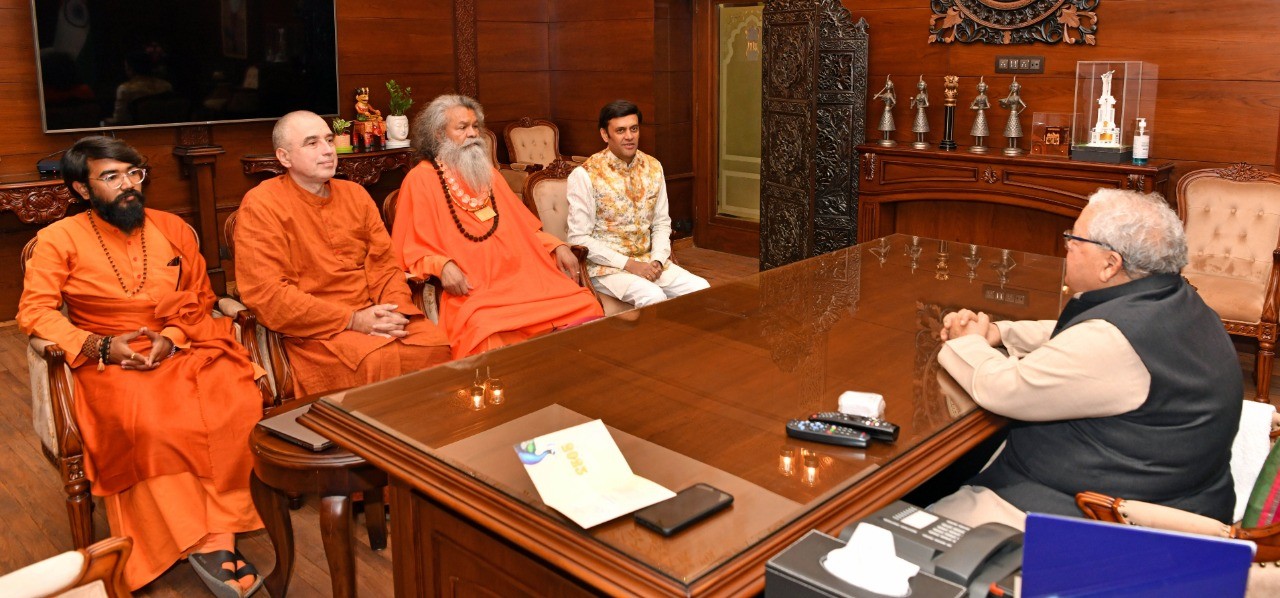 24 December 2022 - Vishwaguruji meets Governor of Rajasthan, His Excellency Kalraj Mishra in Rajbhawan, Jaipur.