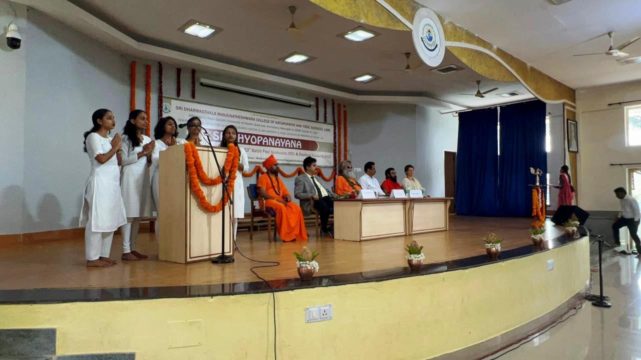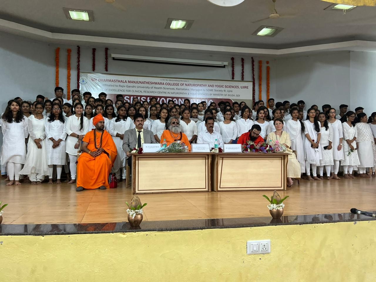 In Dharmasthala, he met with the president, Shri Dr. D.Veerendra Heggade, who invited Vishwaguruji to be the guest of honour at the 13th graduation ceremony of Sri Dharmasthala Manjunatheshwara College of Naturopathy and Yogic Science, Ujire.