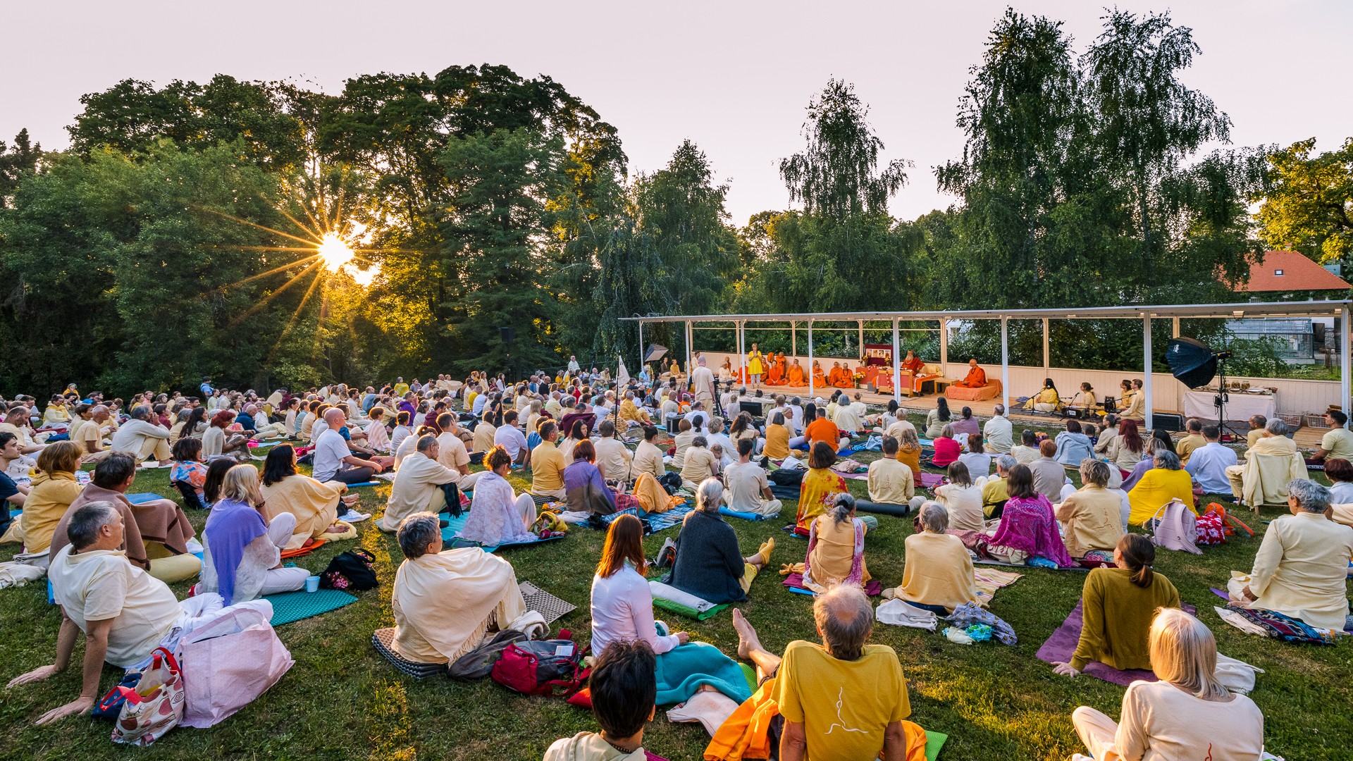 Recognising the longing of his disciples to be with him and have darshan and satsang on Gurupurnima, Vishwaguruji gave Gurupurnima satsang in India at Om Ashram in Jadan and in Europe at Mahaprabhudip Ashram in Strilky, Czechia. Love and devotion have no language, nationality or gender, pure bhakti is always the same and divine.