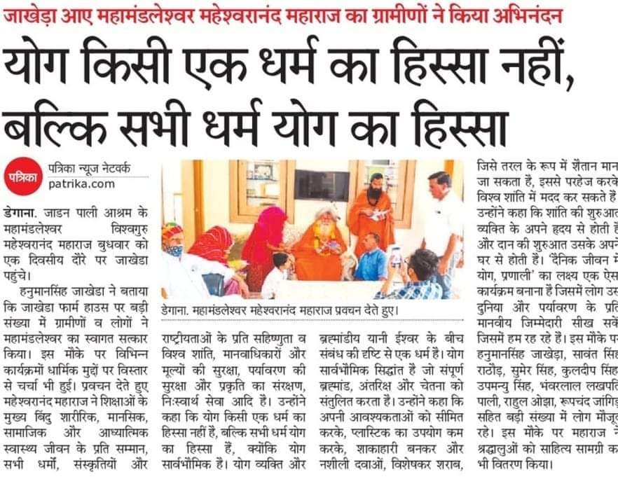 Vishwaguruji was warmly welcomed by Shri Hanuman Singhji and Shri Asaramji Lakhera in Jakhera, Rajasthan, on the way from Jadan to Shri Deepeshwar Bagh Khatu in Nagaur.