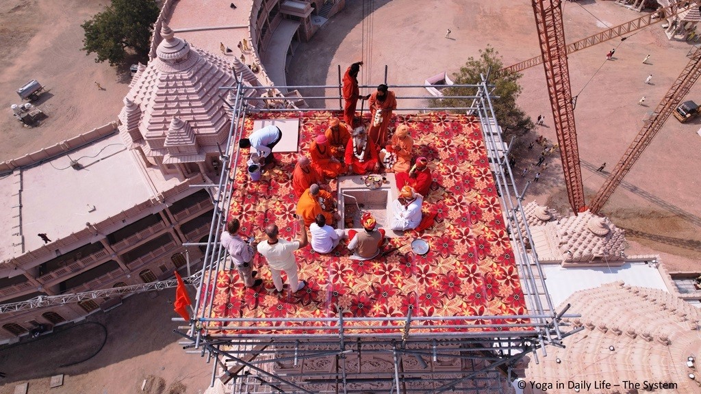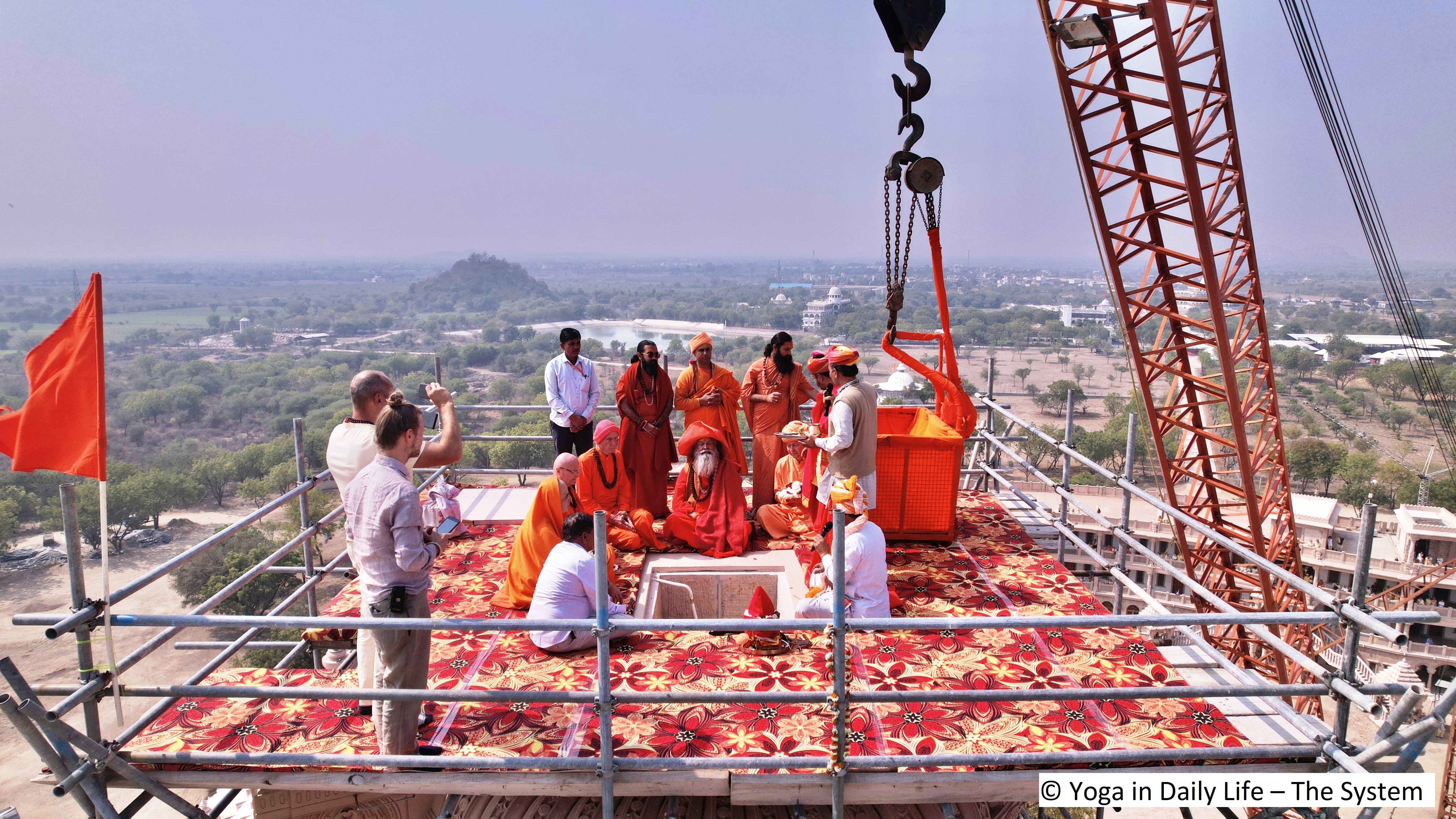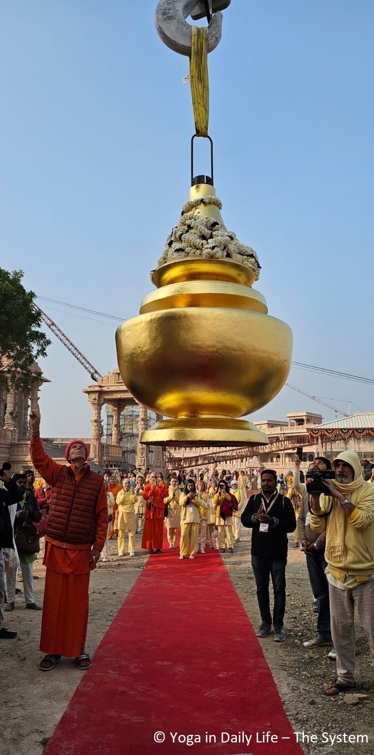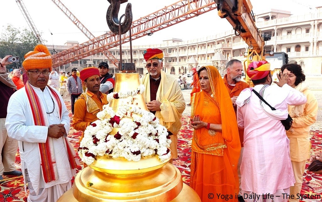 On 16 February, another Kalash will be lifted onto the big Samran (the temple dome above Holy Guruji's Samadhi) and the biggest golden Kalash will be installed on the Sikhar (top of the Shiva Lingam Mandir) after the Dayadanda (golden flag) has been installed in its position next to that.