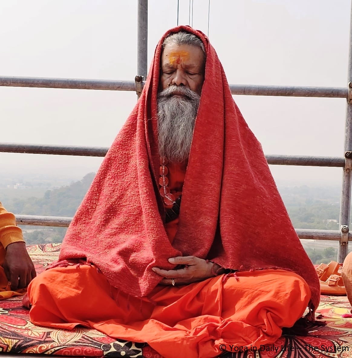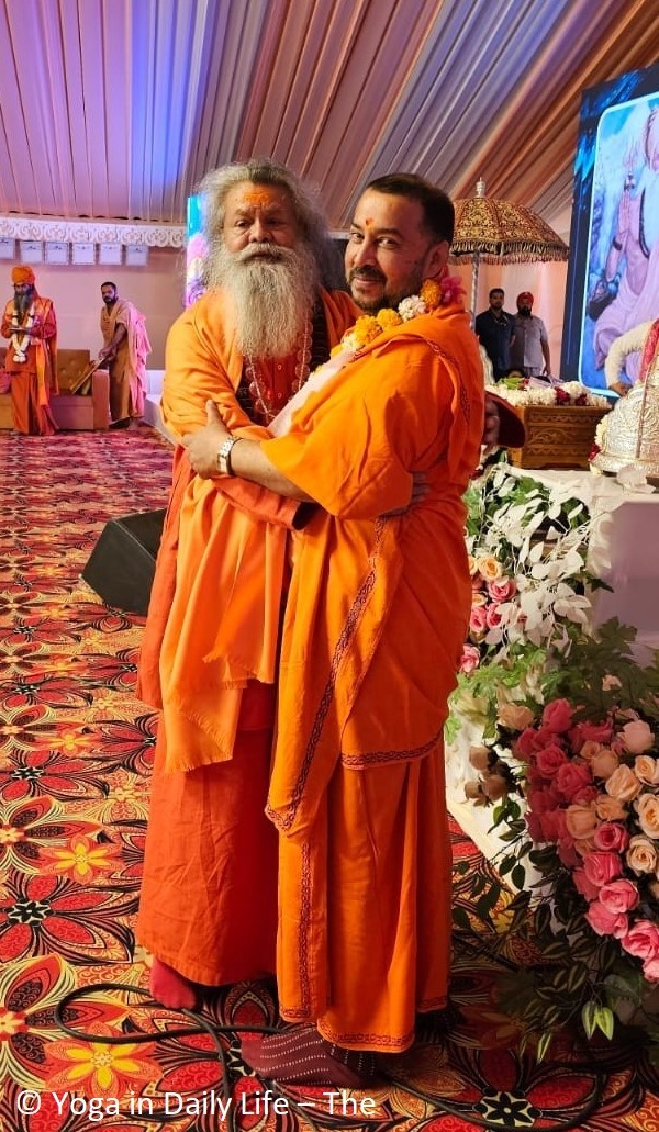 On 15 February, three of the Kalashas were installed on the domes of the ashram, sent up in the air with mantras and the blessings of Gurudev and visiting mahamandaleshwars, sannyasis and bhaktas of Sri Alakhpuriji Siddha Peeth Parampara and mahamandaleshwars of Maha Nirvani Akhara who regularly visit OM Ashram these days, giving their blessing to this holy occasion of the OM Ashram Pran Pratishta process. These special guests included Mahamandaleshwar Vidya Giriji, from Punjab, Mahamandaleshwar Aksharanand Giriji, from Jammu, and Acharya Mahamandaleshwar Swami Vishwatmanand Maharaj.