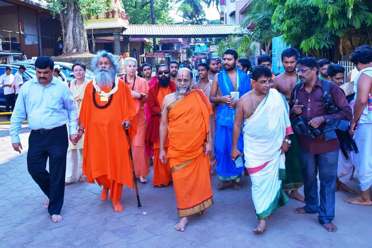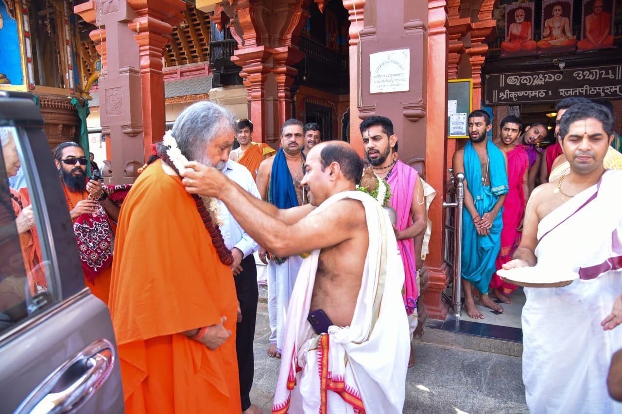 While staying in Bangalore, the capital of the Indian state of Karnataka, Vishwaguru Paramhans Sri Swami Maheshwaranandaji visited Sri Puthige Sri Krishna Math in Udupi and was warmly welcomed by current main pujari, Sri Sugunendra Teertha Swamiji.