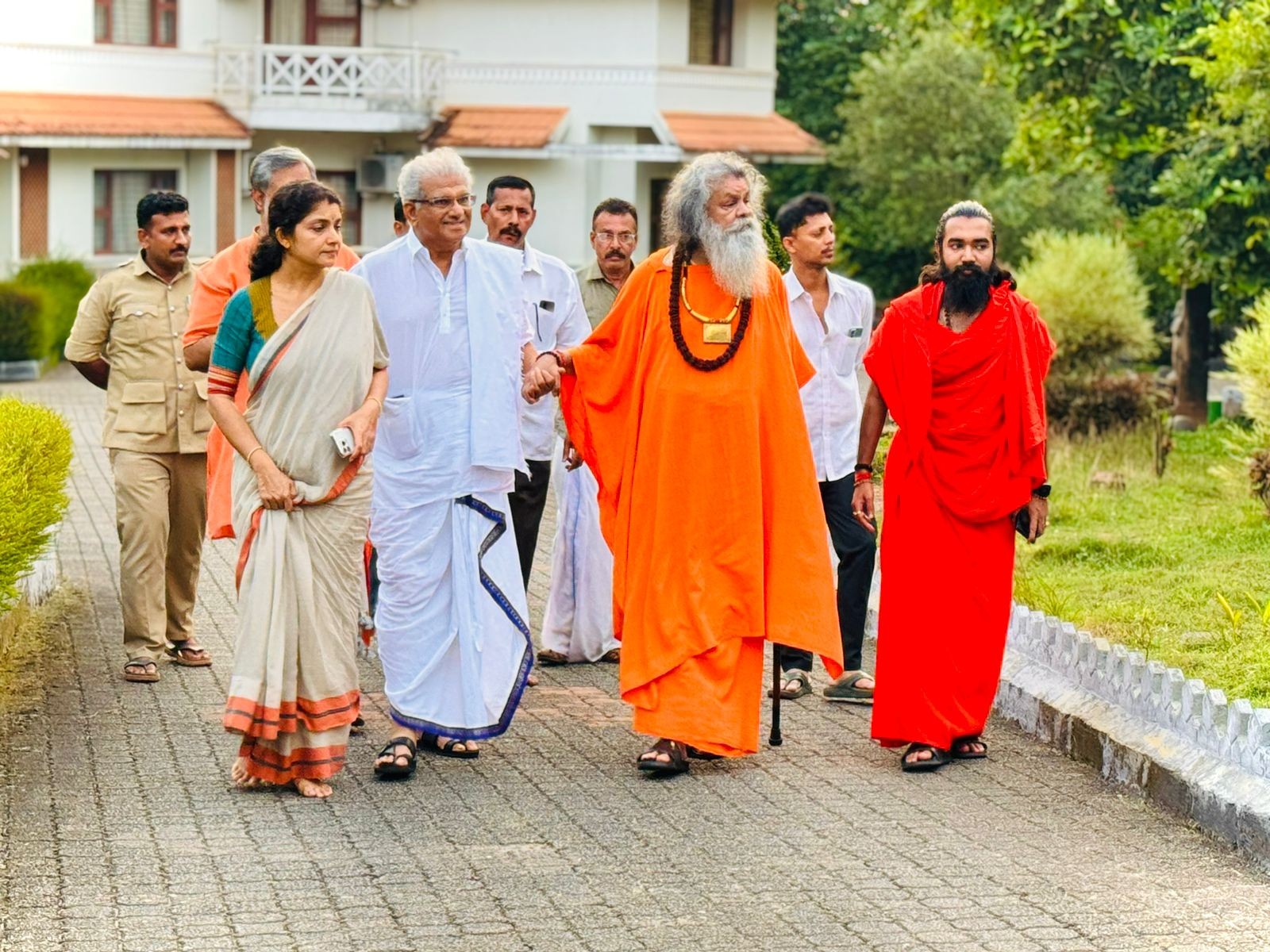 During his stay in South India, Vishwaguru Mahamandaleshwar Paramhans Sri Swami Maheshwarananda Ji visited his dear friend Dr Veerendra Ji, the Heggade of Sri Dharmasthala Manjunatha Temple in Udupi, Karnataka.