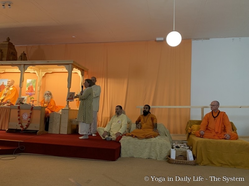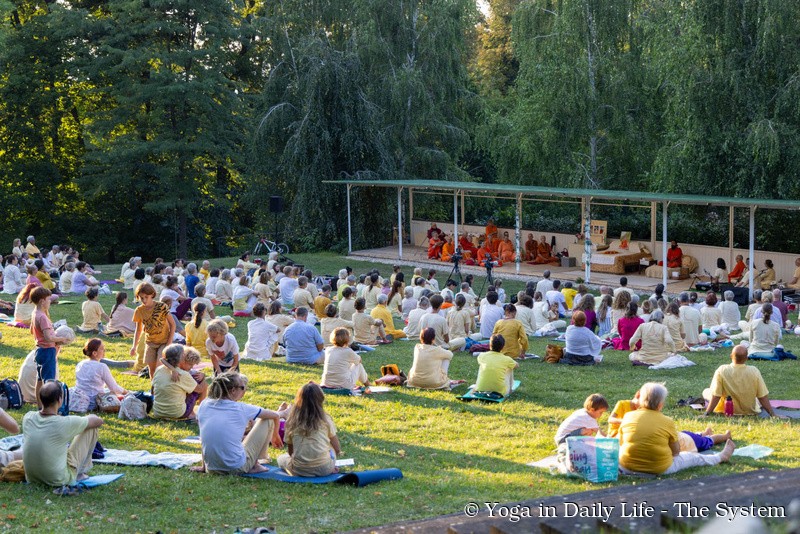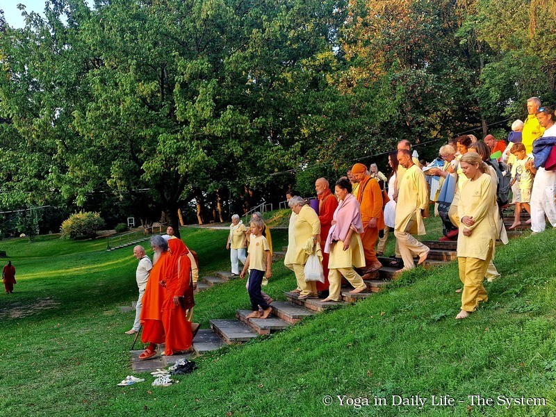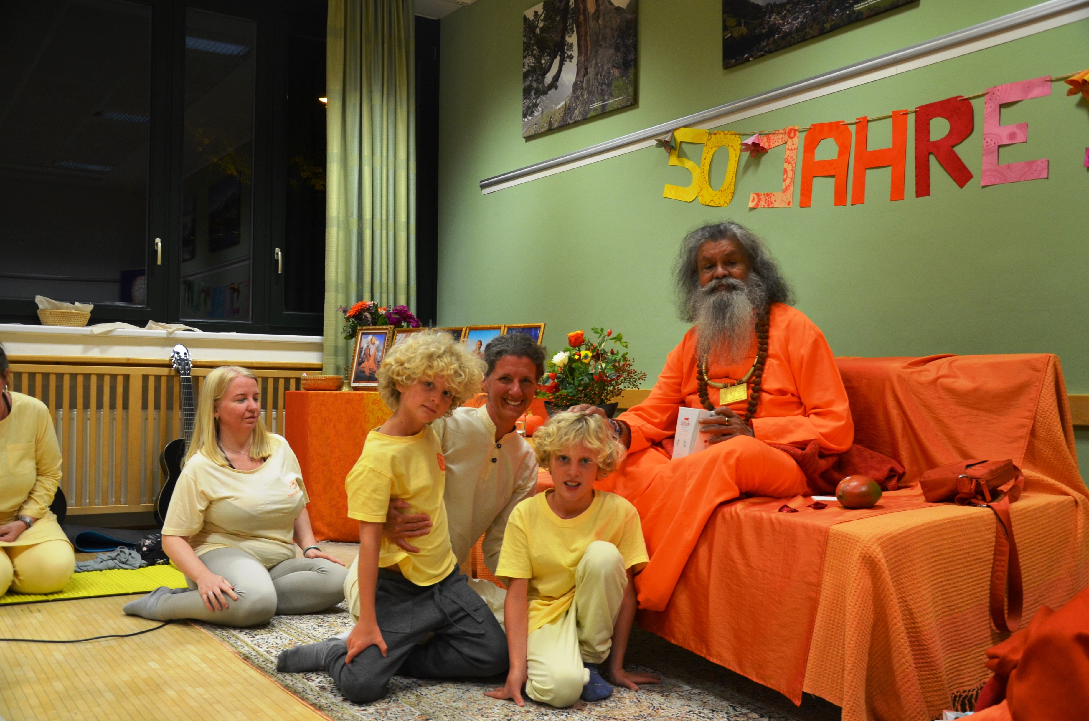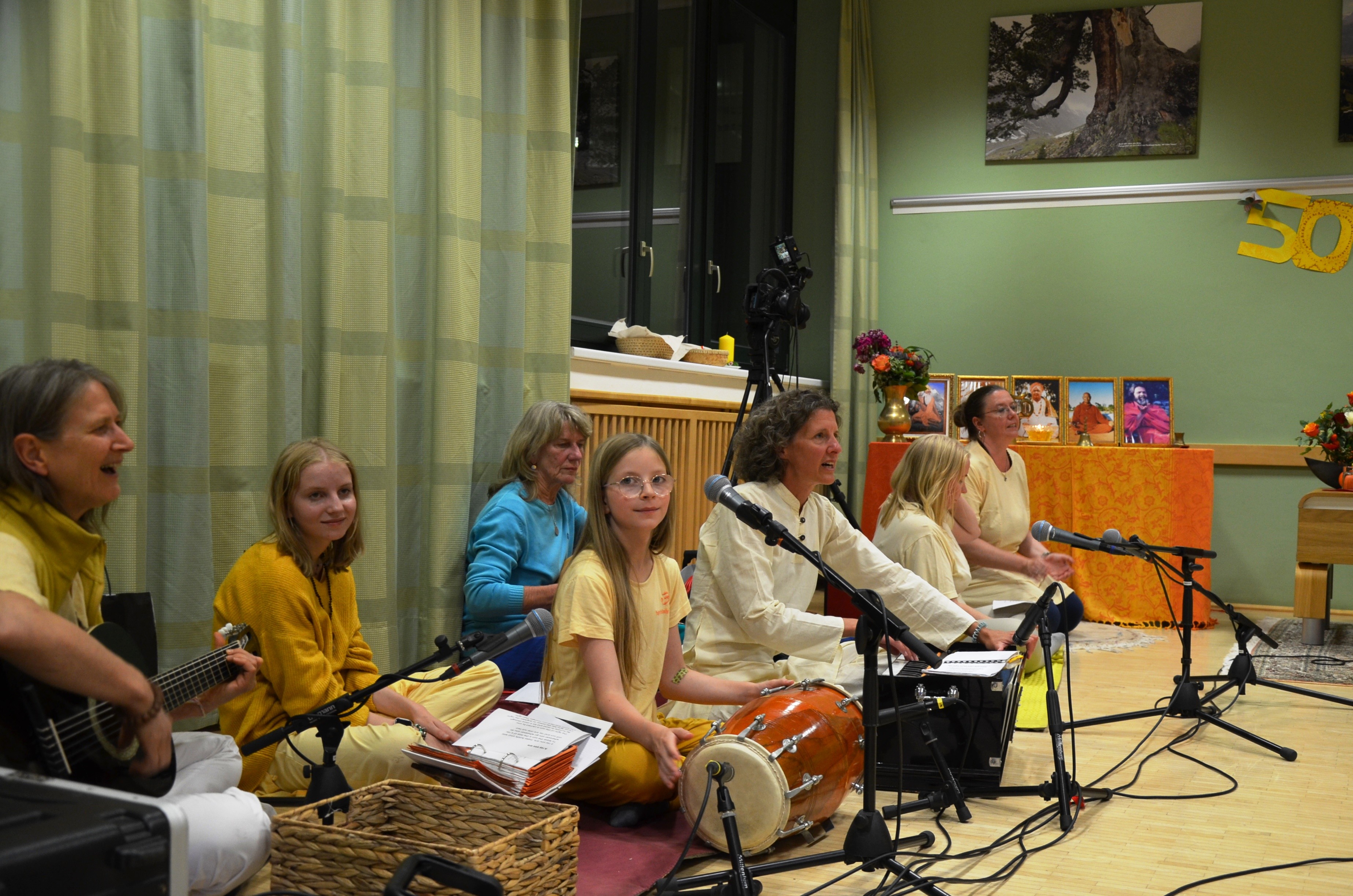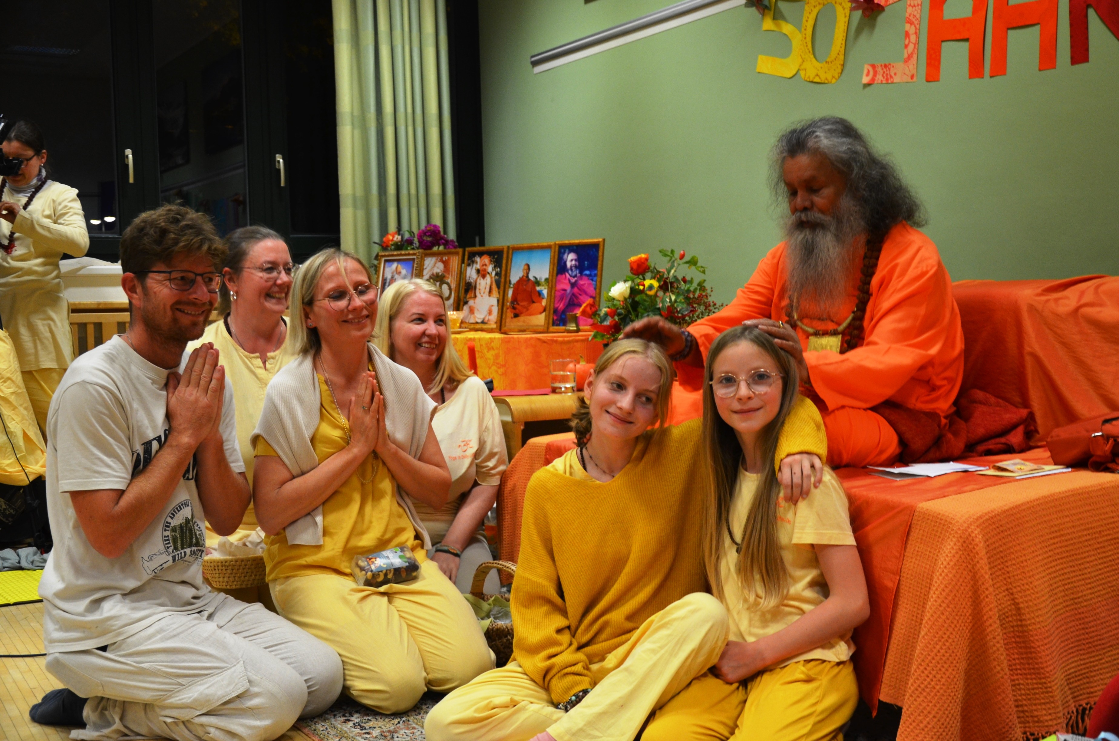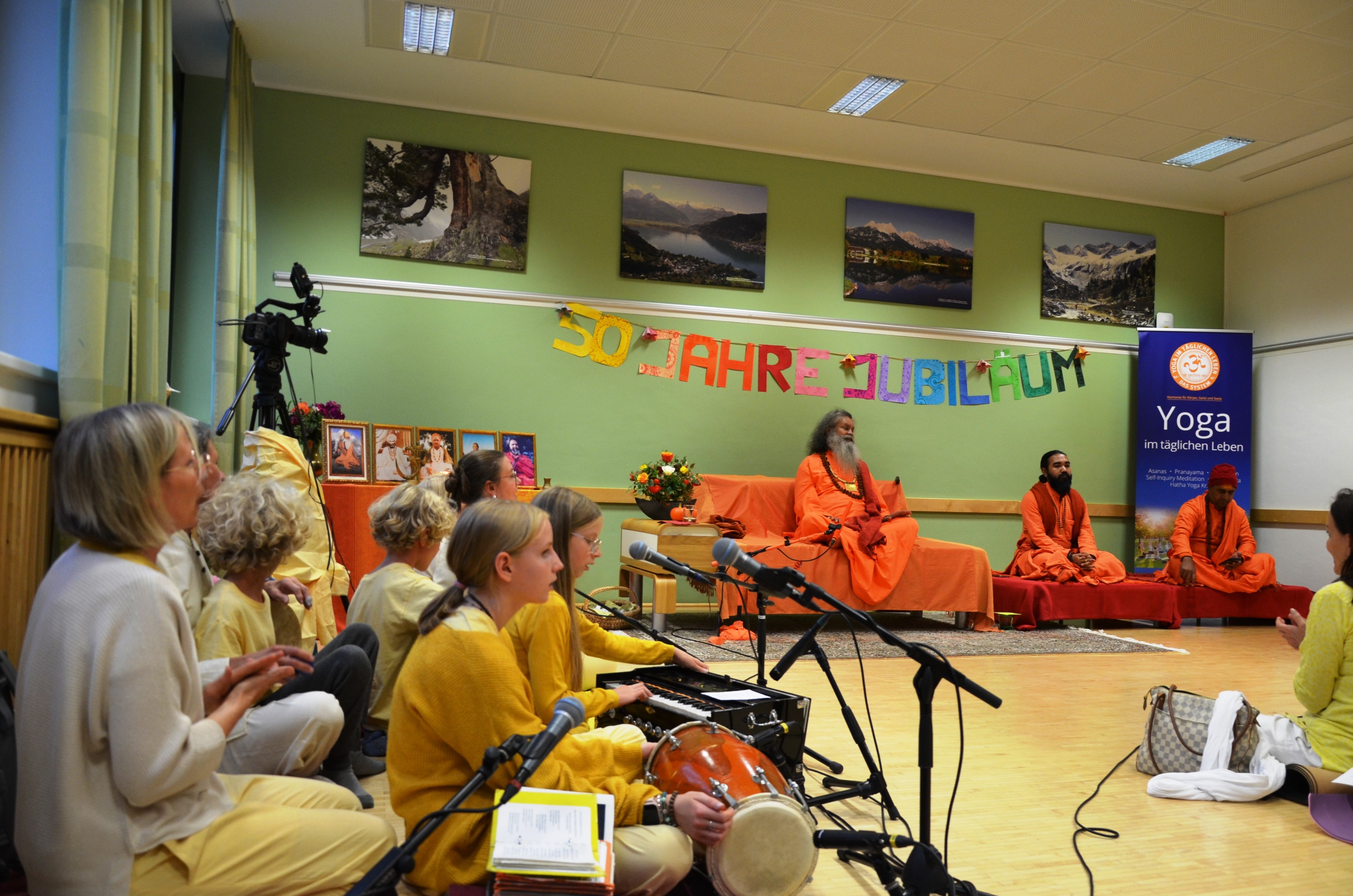 The first day of celebrations was accompanied by Swami Avatarpuriji and included a video call with Swami Premanandaji, live from India (originally from Salzburg). A slide show presentation offered a look into the 50-year history of the yoga group, with pictures of activities and events from the past years: exciting world peace festivals, charity flea markets, the planting of wild fruit trees, interreligious peace prayers, International Yoga Days, yoga in the park, and many other beautiful memories.