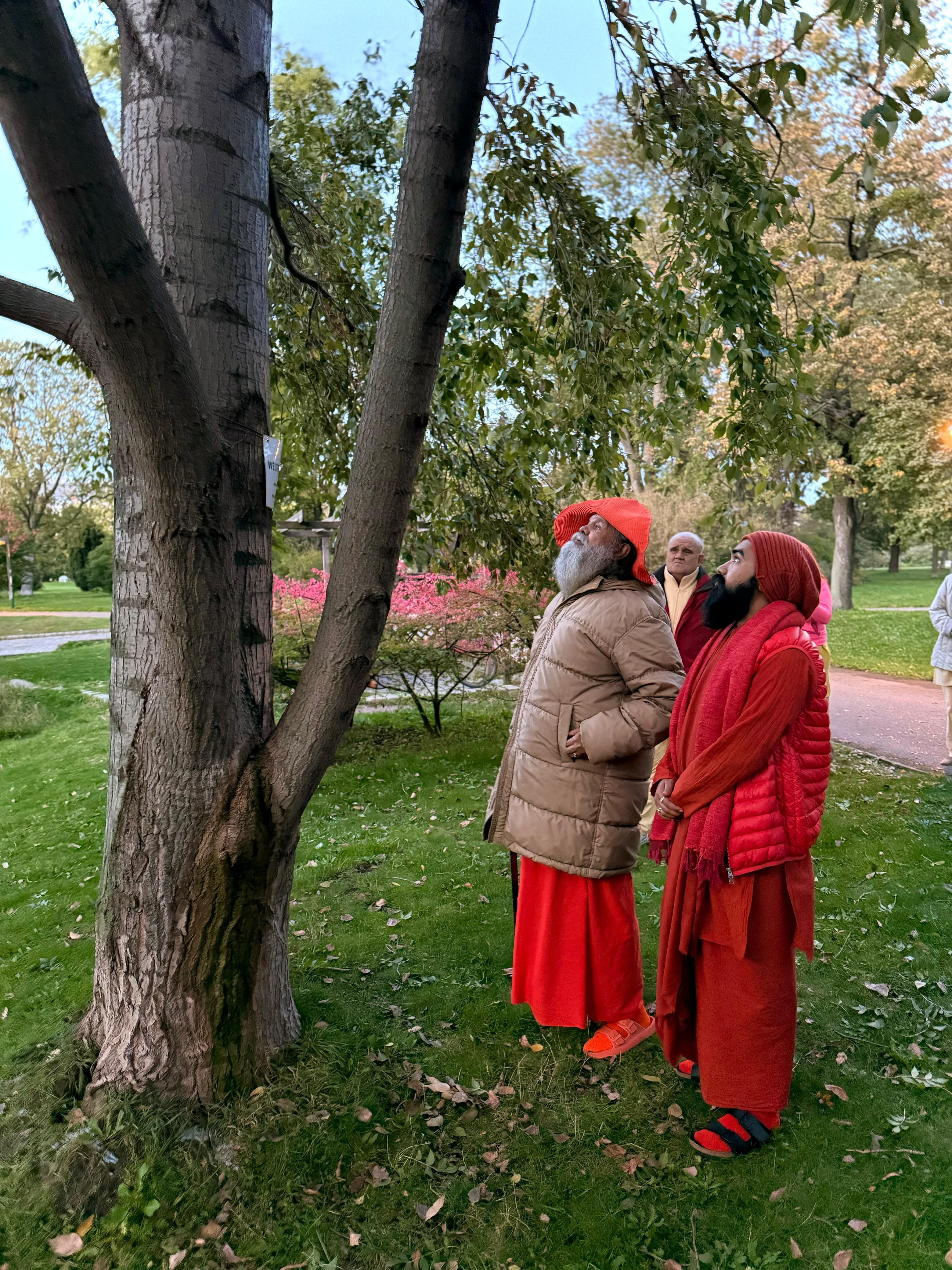 On his second day in Vienna, 9 October, Vishwaguruji visited the Peace Tree in Schweizer Garden near Guruji Ashram – which was the first World Peace Tree in Austria that was planted by him in 2005, on the occasion of the opening of Vienna Yoga in Daily Life Guruji Ashram, accompanied by the principal of the 3rd District, Mr Hohenberger, Father Elmar (Catholic Church), Dr Seelawansa Thero (Buddhist) and the Ambassador of India, H. E. Dr. Sheelkant Sharma.