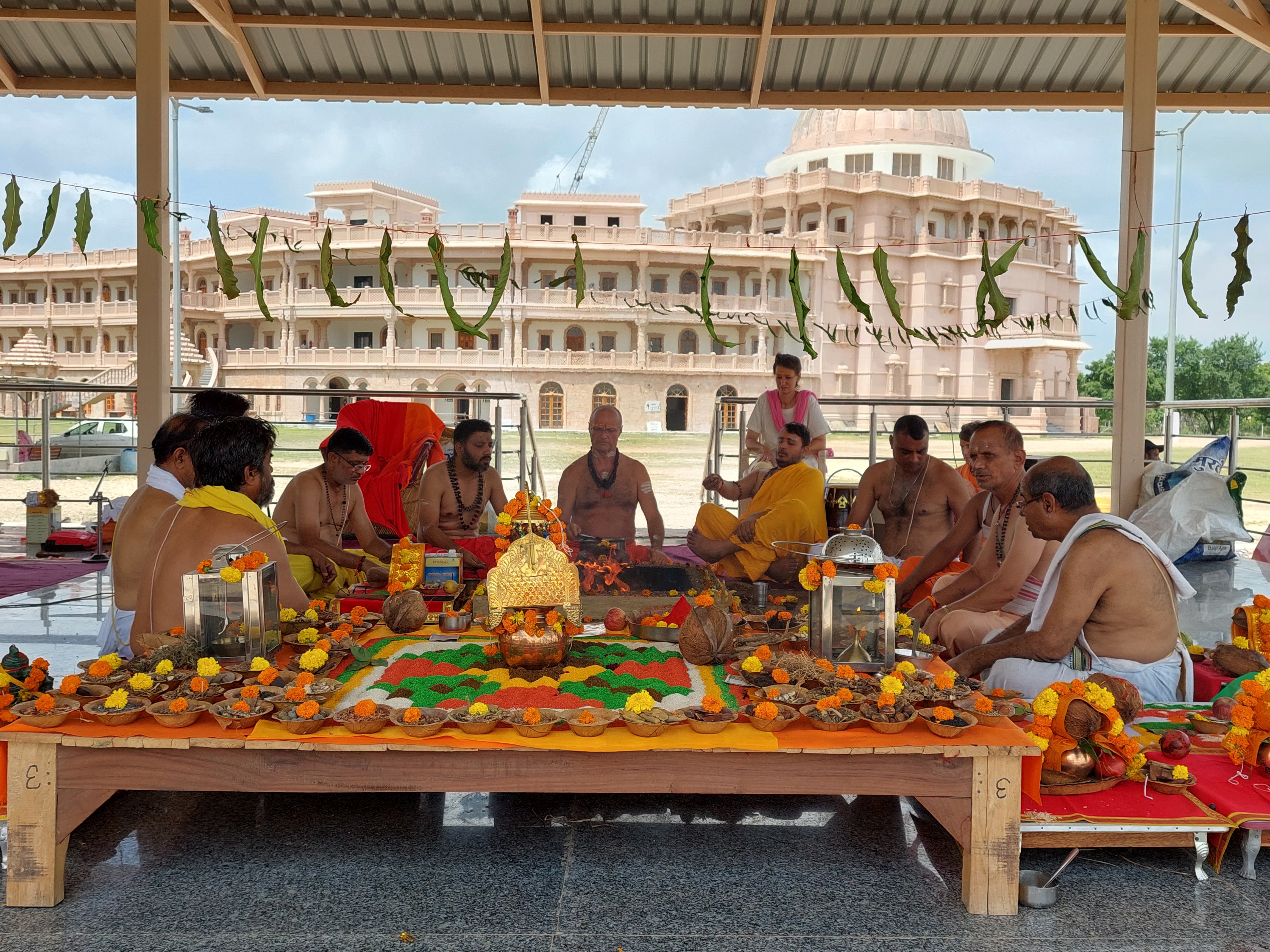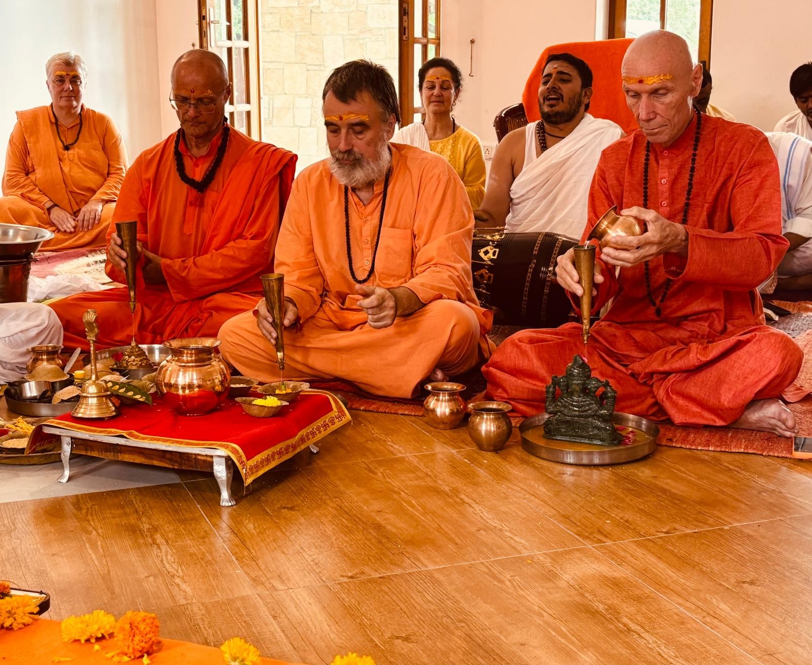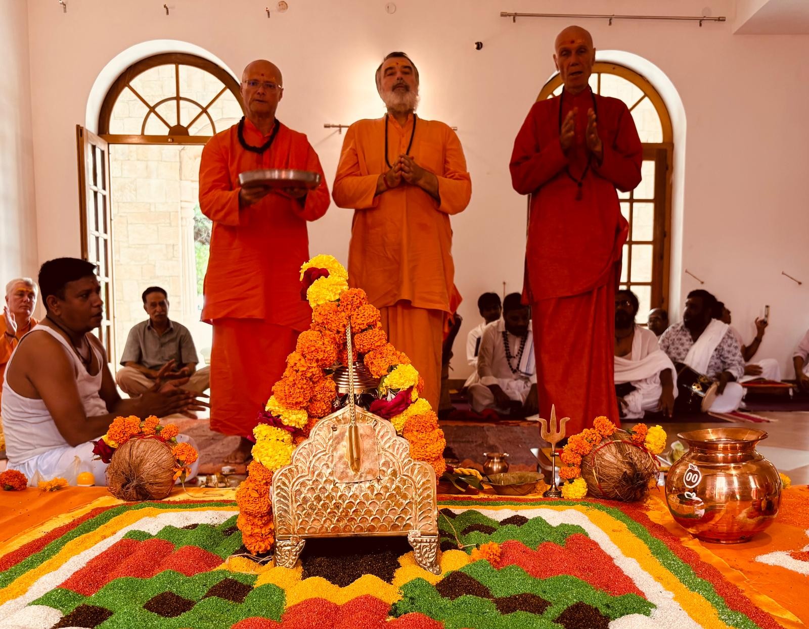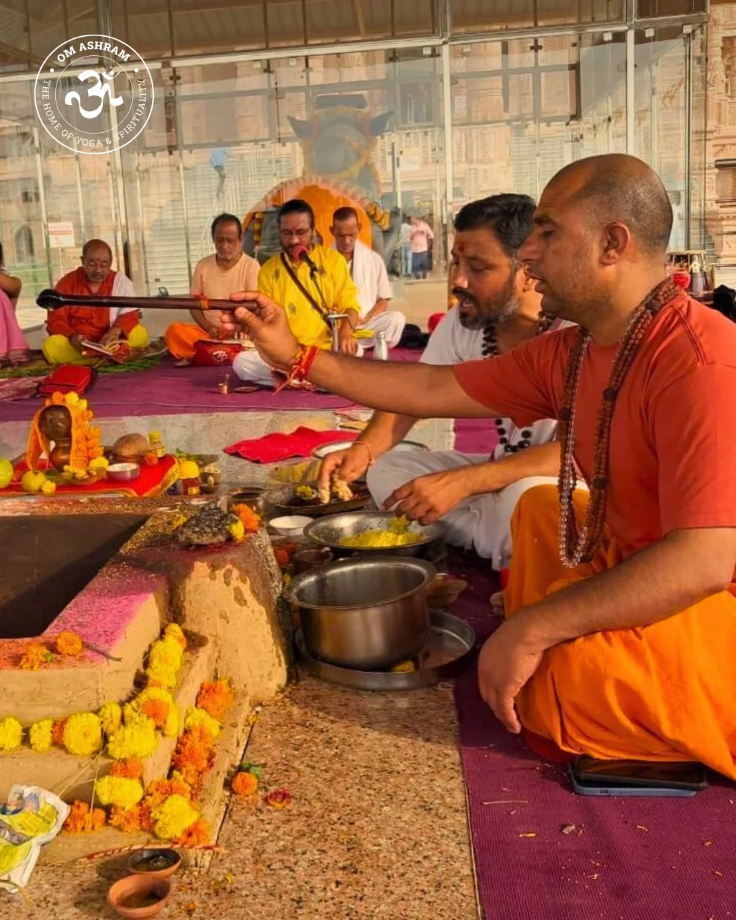 31 July - 6 August 2025 - For the wellbeing, peace, and prosperity of the world, and for the health and long life of His Holiness Vishwaguru Mahamandaleshwar Paramhans Sri Swami Maheshwarananda Puriji, a seven-day Puja ceremony was organized in OM Ashram. The ashram was immersed in the powerful spiritual vibrations of Mahamrityunjaya Japa, Rudrabhisheka, and the continuous, devoted chanting led by eleven learned pandits.
