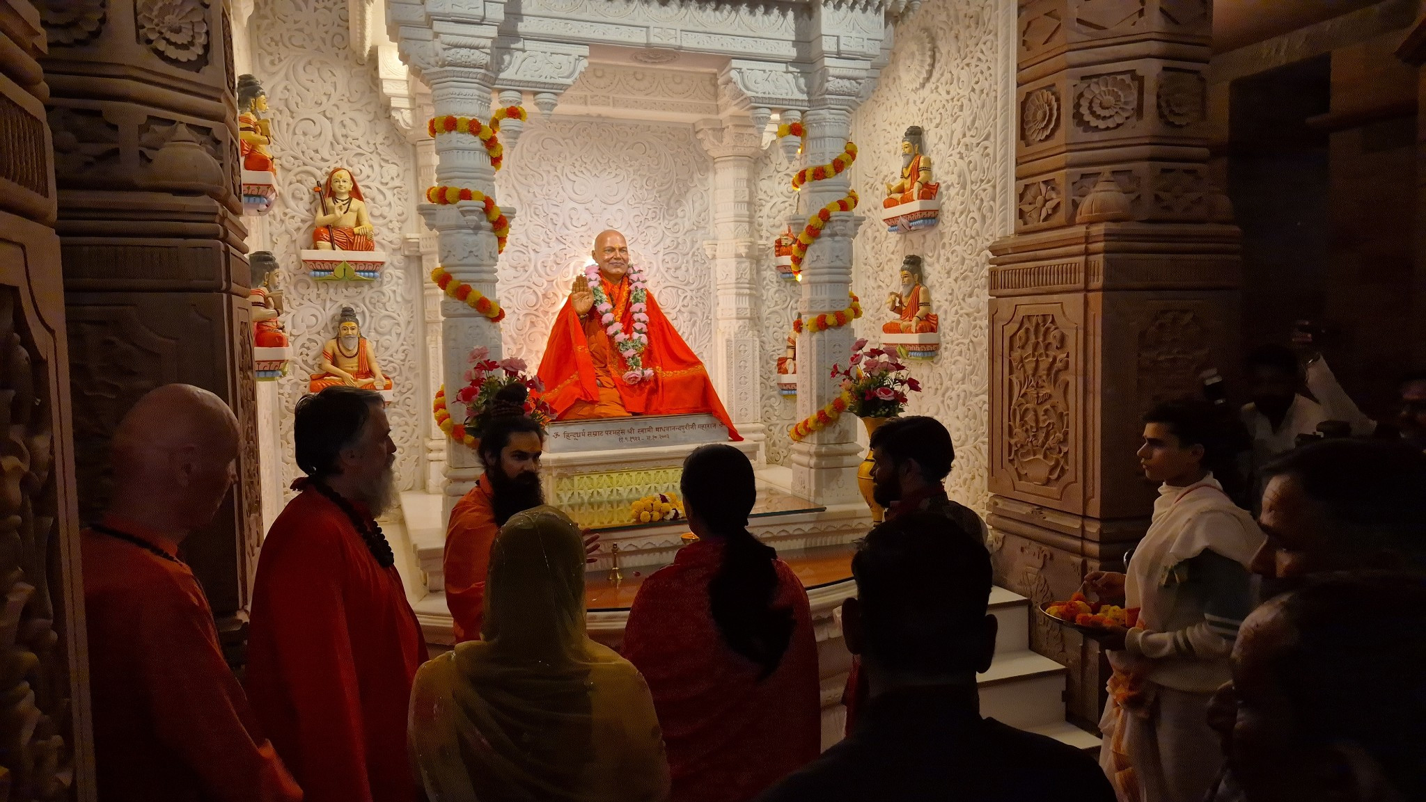 Mahamandaleshwar Swami Gyaneshwar Puriji, Mahamandaleshwar Swami Phool Puriji, Acharya Swami Rajendra Puriji, Swami Yogesh Puriji, Shri Umesh Ojhaji, Kapil Agarwalji and many national and international devotees welcomed her warmly.