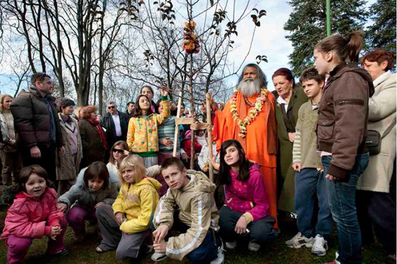 His Holiness Vishwaguru Mahamandaleshwar Paramhans Swami Maheshwaranandaji planted his 50th World Peace Tree in the park of an orphanage village in the city of Novi Sad. He was officially greeted and introduced as one of the greatest humanitarian workers in Europe and worldwide by Mr. Vladimir Kopici, the Deputy Mayor of Novi Sad, and other officials from the City Council and the Assembly of Novi Sad. Hundreds of children as well as delegates and guests from several countries followed the ceremony. In his address His Holiness Vishwaguruji emphazised that this tree should stay as a symbol of Peace and at the same time shall fulfill the wishes of all who come and touch this tree with pure heart and wishes.